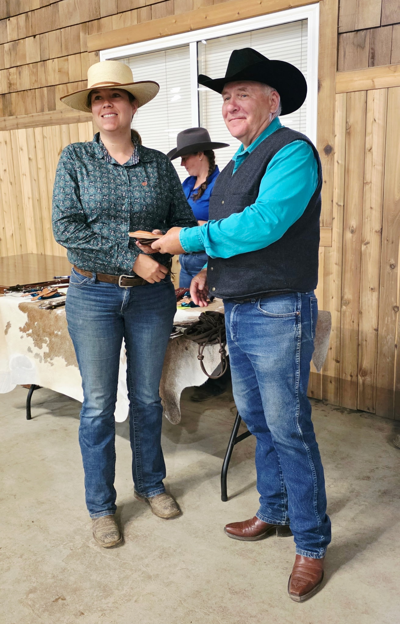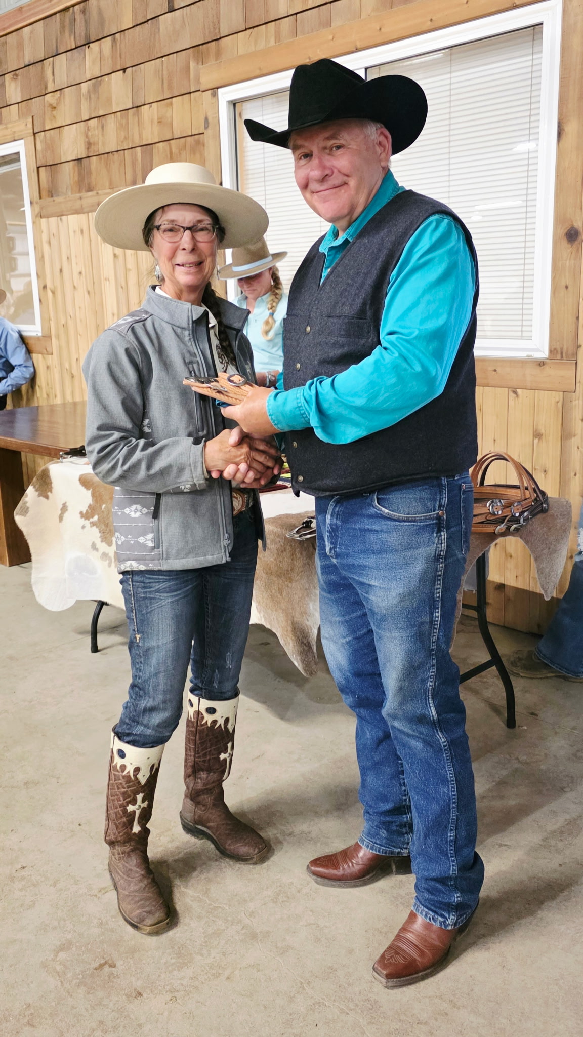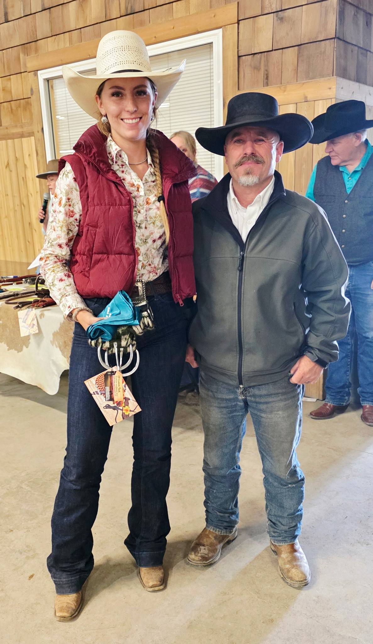 Lars Baron and Georgie were awarded a "Skills of the Outfits" Spade Bit, by Brooks Bits, and a custom wild rag by Black Horse Customs for winning First Place in the Open Division.