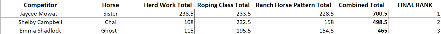 novice division scores